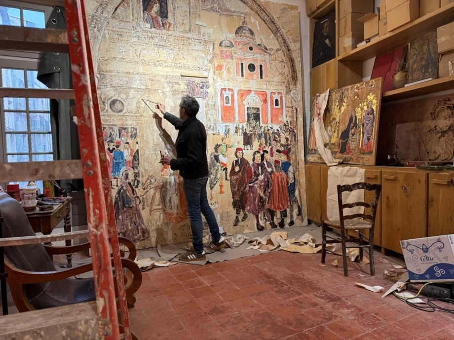 Angels, musicians, allegorical figures and architectural forms are not invoked as scholarly references, but as enduring motifs embedded in our collective imagination. The sacred is no longer religious: it becomes anthropological, linked to the transmission, to the memory of civilisations, and to the human need to give form to that which endures through the centuries.