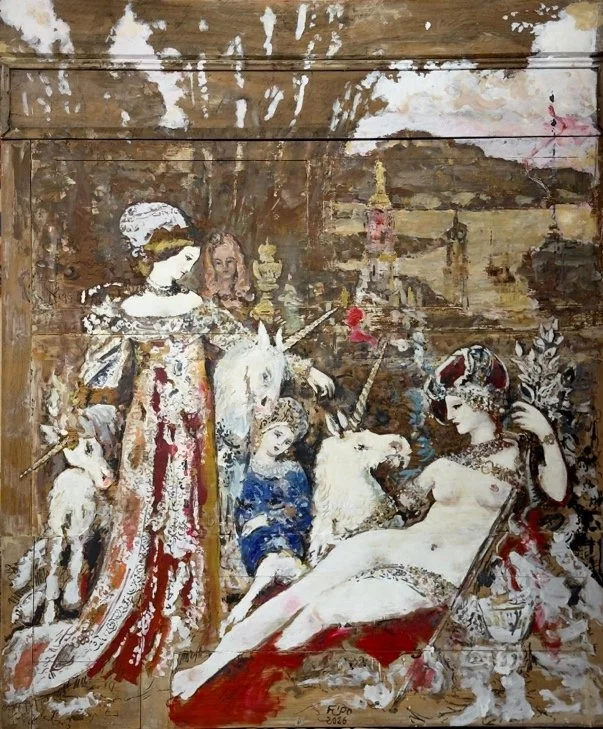 Displayed within Château de Belcastel, this painting enters into a dialogue with an architecture that has, too, stood the test of time. The castle does not merely showcase the works; it provides them with a space in which to resonate. Together, they explore what remains, what changes, and what returns.